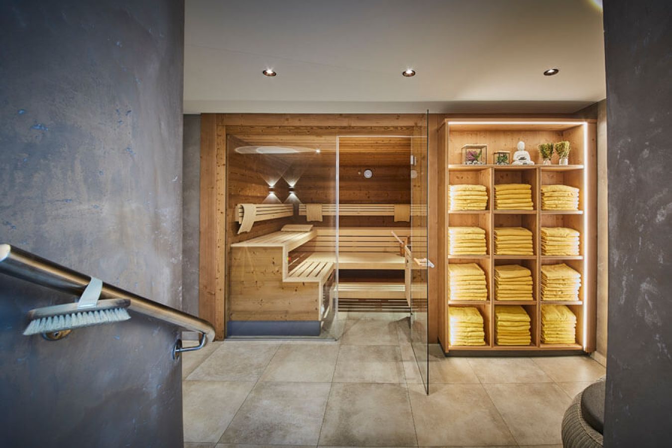 - Gemütlich alpiner Wellnessbereich mit Hallenbad (12,5 m x 5 m) 30 °C Wassertemperatur, finnische Sauna ca. 85 °C, Textilsauna ca. 75 °C, Dampfbad mit verschieden Aromen - ca. 50 °C, 90 % Luftfeuchtigkeit, Tepidarium - Infrarotsauna mit Lichttherapie Luftsprudel-Massageliege, Wasser-Massagebank, Ruheraum mit Panoramablick ins Glemmtal, Wintergarten mit Panoramablick, Sonnenterrasse und flauschigen Bademänteln