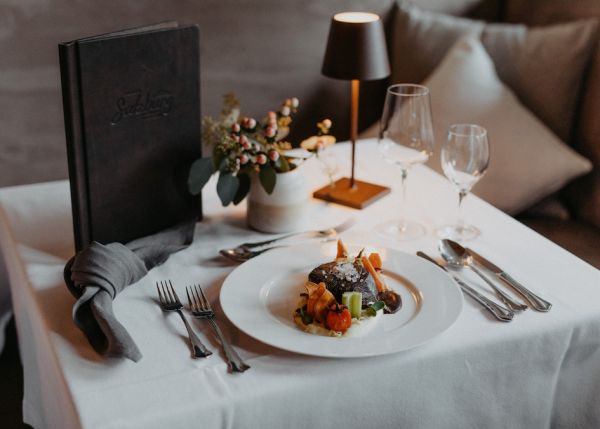 - 5-Gänge-Wahlmenü im Rahmen der Halbpension inkl. vegetarischer Menüvarianten, buntem Salatbuffet, einmal wöchentlich warmes Vorspeisenbuffet, einmal wöchentlich kaltes Vorspeisenbuffet, einmal wöchentlich Dessertbuffet, einmal wöchentlich Alpen Gala, spezielle Menüs für Kids, Begrüßungsaperitif an der Bar am Anreisetag, Granderwasserbrunnen mit verschiedenen Fruchtsirupen