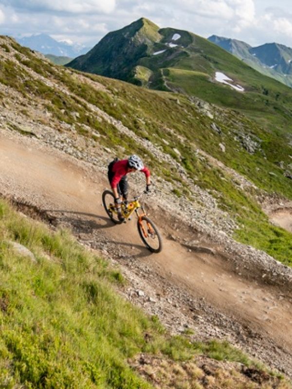 Naturbelassener und flowiger Panoramatrail in einer atemberaubenden Bergkulisse, den man mit viel Speed nehmen kann.
